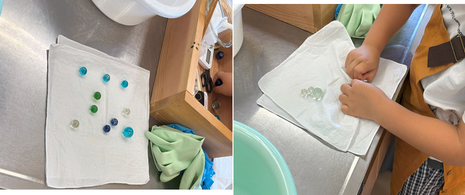 輪ゴム、割りばし、ビー玉、洗濯ばさみを思い思いに使って