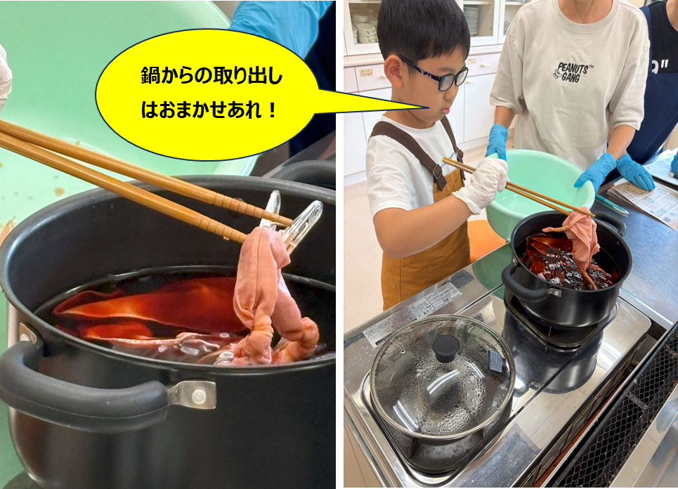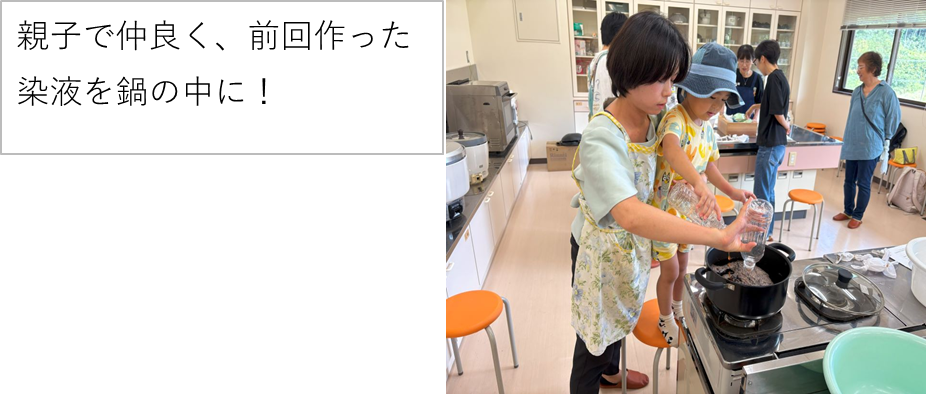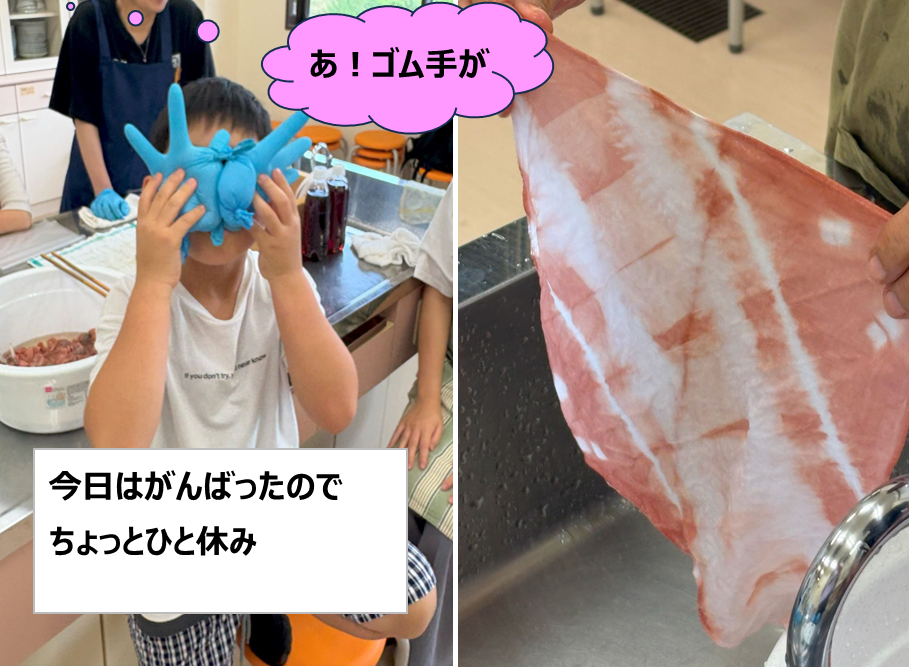 作業が順調に進みましたので、染めの色を濃くするために染液に浸けるのをもう一回プラスすることになりました。