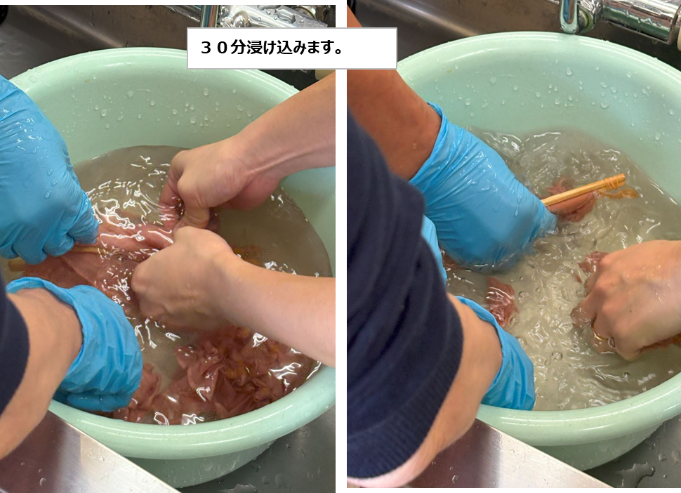手順② ミョウバン液に20分浸ける。➡洗う。