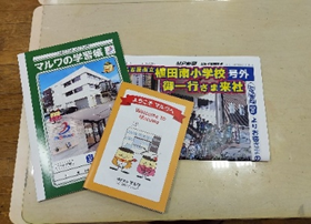 さらに、「オリジナルマルワ学習帳」をプレゼントしていただきました。表紙には子どもたち一人ひとりの名前が透明に印刷されています。先ほど見学した「オンデマンド印刷」です。世界に一つの自分の名前が印刷されたオリジナルノートです。