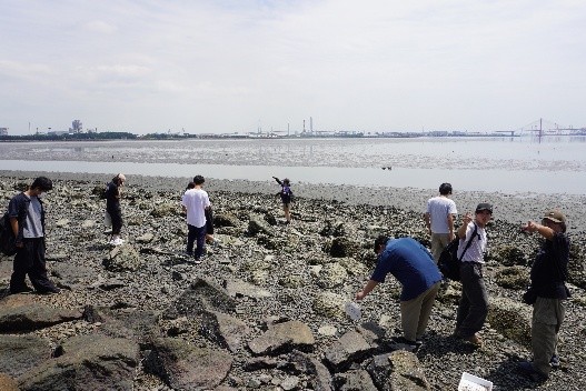 続いて稲永エリアに移動し、名古屋市野鳥観察館のスタッフの方から藤前干潟にやってくる野鳥についてレクチャーを受け、実際に野鳥観察を体験。鳥が一番少ない季節でしたが、ちょうど秋の渡りが始まっており、シギの仲間も観察できました。