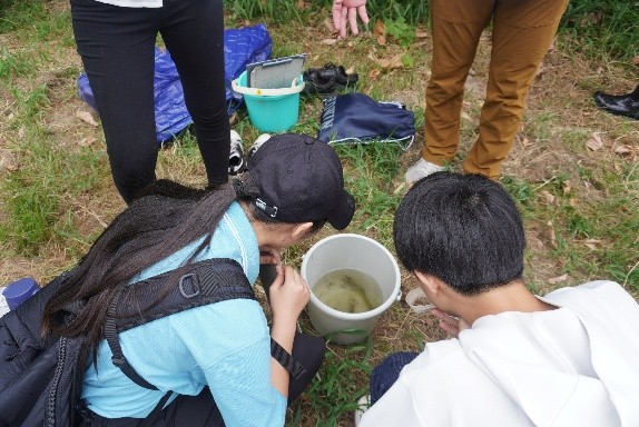 (名城大学附属高校の皆さんによる庄内川での生物調査)
