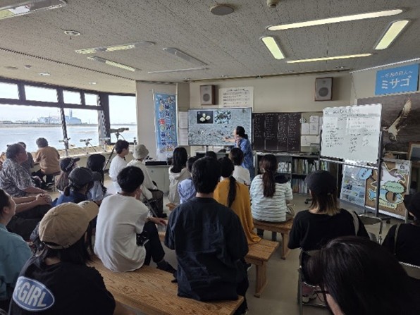 最後に訪れた稲永ビジターセンターでは、干潟に生息するカニや貝などの生きものについてもレクチャーを受け、動画で楽しく学びました。そして「近年、特に小学校の利用が減っている」という施設の課題についてもお話を聞くことができました。