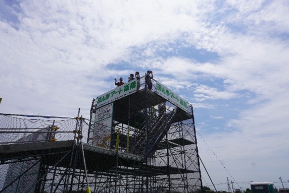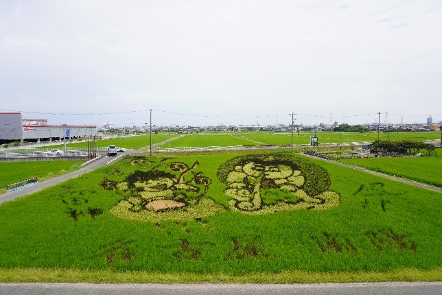 次に向かったのは、名古屋市内に唯一まとまって広がる田園地帯、名古屋市港区の南陽町。ここでは、展望台から美しい田んぼアートを鑑賞しました。このアートと展望台は、地域の農家さんたちが「田んぼの魅力を伝えたい!」という想いで実行委員会を結成し、協賛企業を集めて実現させたものだそうです。