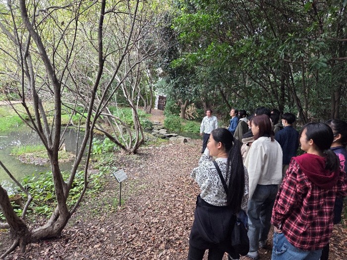 お昼休憩をはさんで、午後は「なごや東山の森」へ。ここは「なごや東山森づくりの会」代表の瀧川さんはじめ、会のみなさんが案内してくださいました。街中に残されたこの森は、なんと当時オリンピックのスタジアム建設候補地になるところを、反対運動によって守られたという歴史があります。八竜湿地が「今ある湿地を守る」活動がメインだったのに対し、東山の森は「元々あった湿地を“再生”する」活動がメイン。瀧川さんと一緒に森を歩いて当時の様子を教えていただき、森を歩いて感じたことを話し合いました。