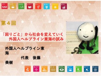 2025秋冬 SDGsオンラインセミナー 未来を変えるSDGs:さあ、あなたも 「誰一人取り残さない」社会への第4回は、NPO法人外国人ヘルプライン東海の代表の後藤美樹さんによる、困りごと」から社会を変えていく:外国人ヘルプライン東海の試みと題してご講演をいただきました。