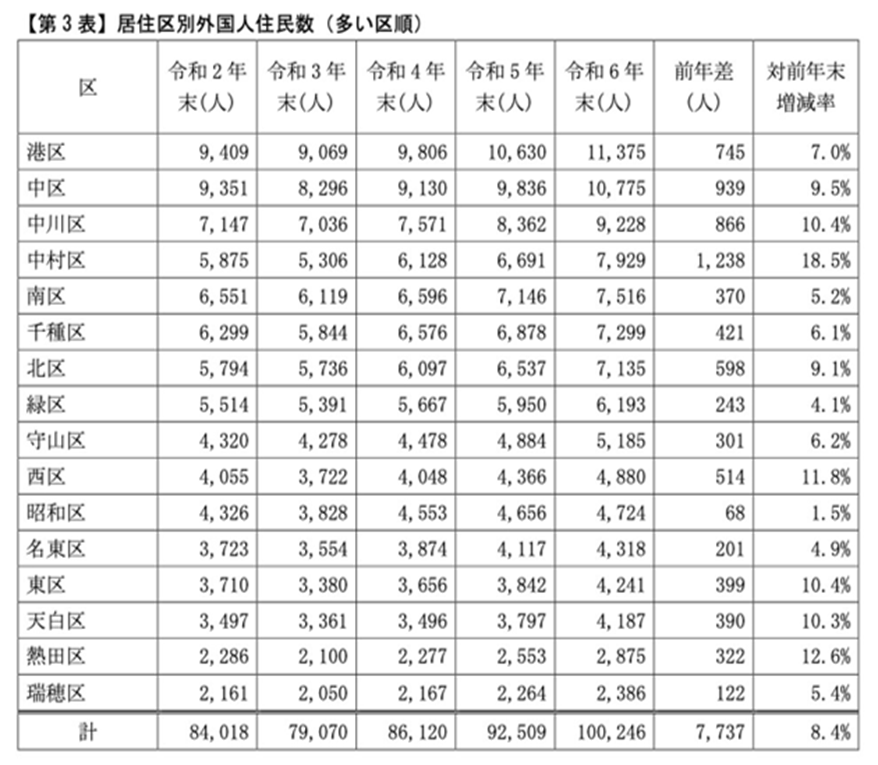 急増する住民数: 名古屋市の外国人住民は2024年に初めて10万人を突破しました 。