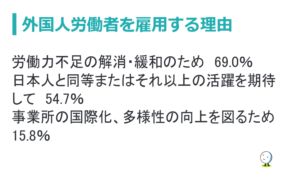 労働環境: 製造業(約3割)やサービス業に従事する人が多く、背景には深刻な労働力不足があります 。