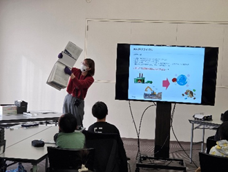 ショールーム見学の後は、社員の方から㈱サンゲツの歴史や仕事内容、SDGs取組について、クイズを交えながら教えていただきました。
