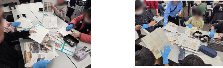 「さあ!みなさんにも見本帳のリサイクル作業を体験していただきます!」