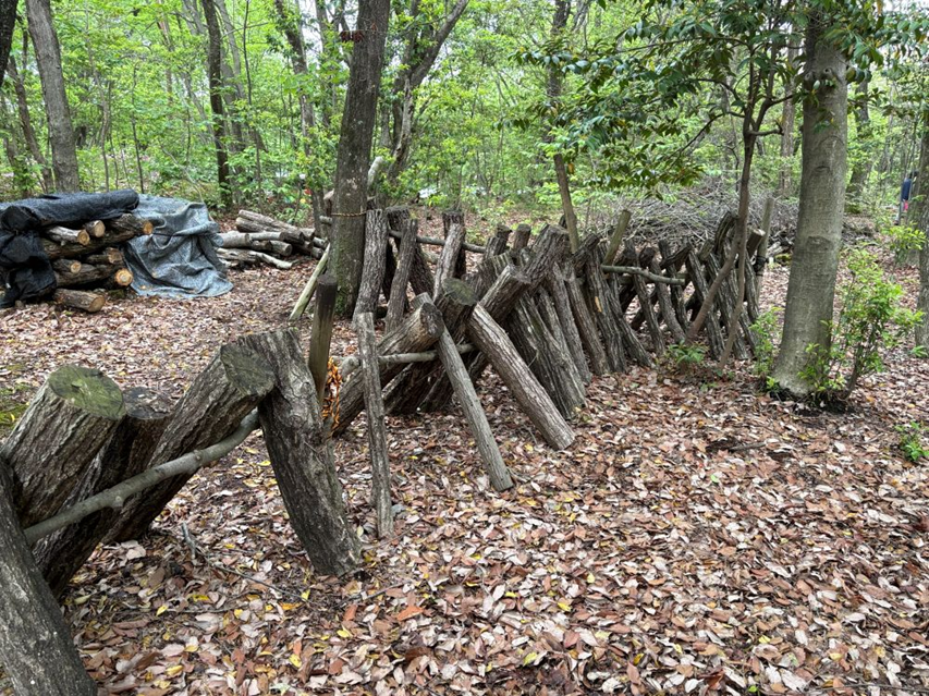 さらに足を進めると、シイタケ栽培の原木を発見。里山が人の手によって活用されている様子を間近に感じることができました。