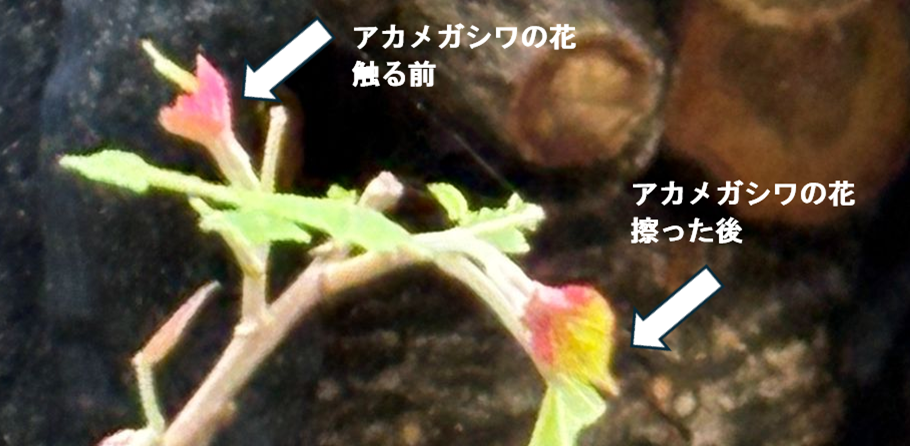 「アカメガシワ」の花は、触ると 産毛のような毛が落ちて色が変わると教えていただきました。
