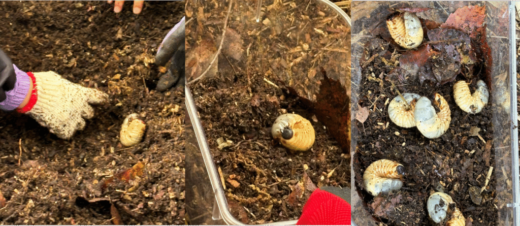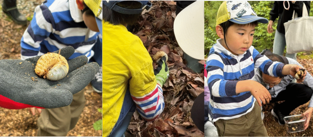 「いた!」「こっちにも!」と夢中になって土を触り、驚くほどたくさんの幼虫を採取することができました。